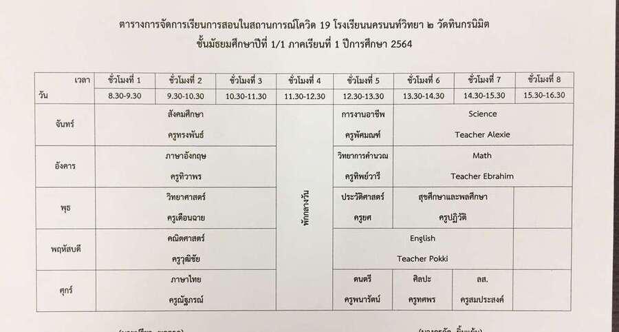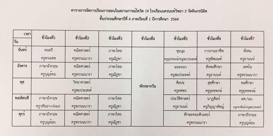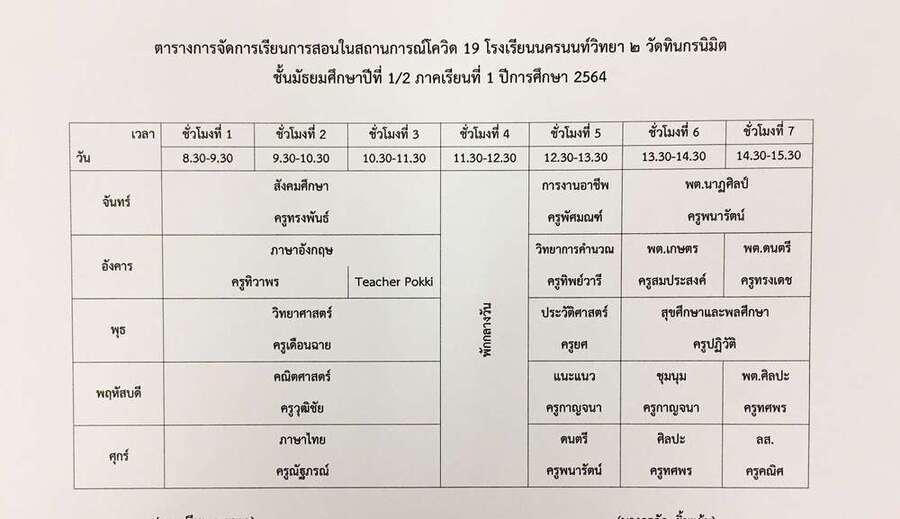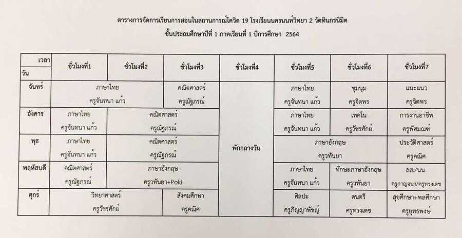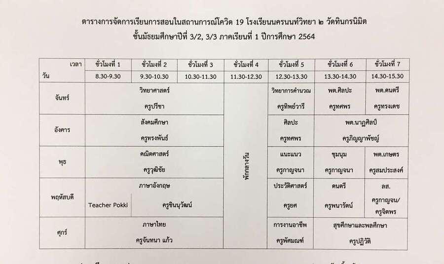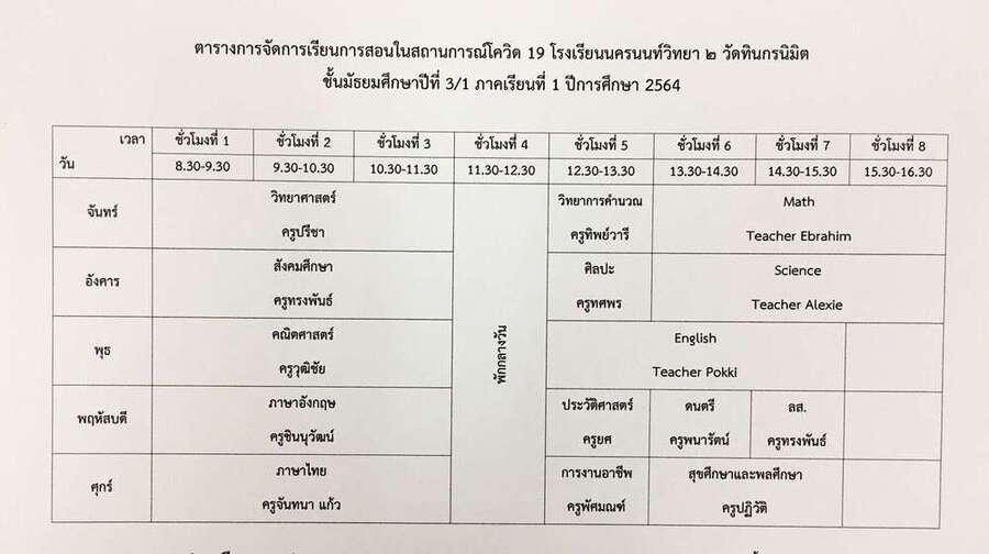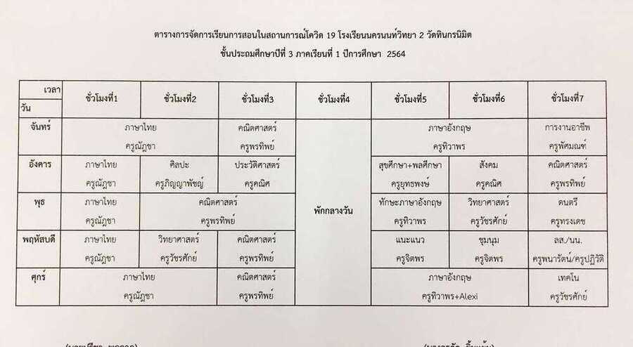 แจ้งตารางเรียนออนไลน์ เริ่ม 24 พ.ค. 64 S:0