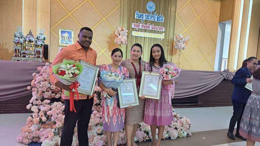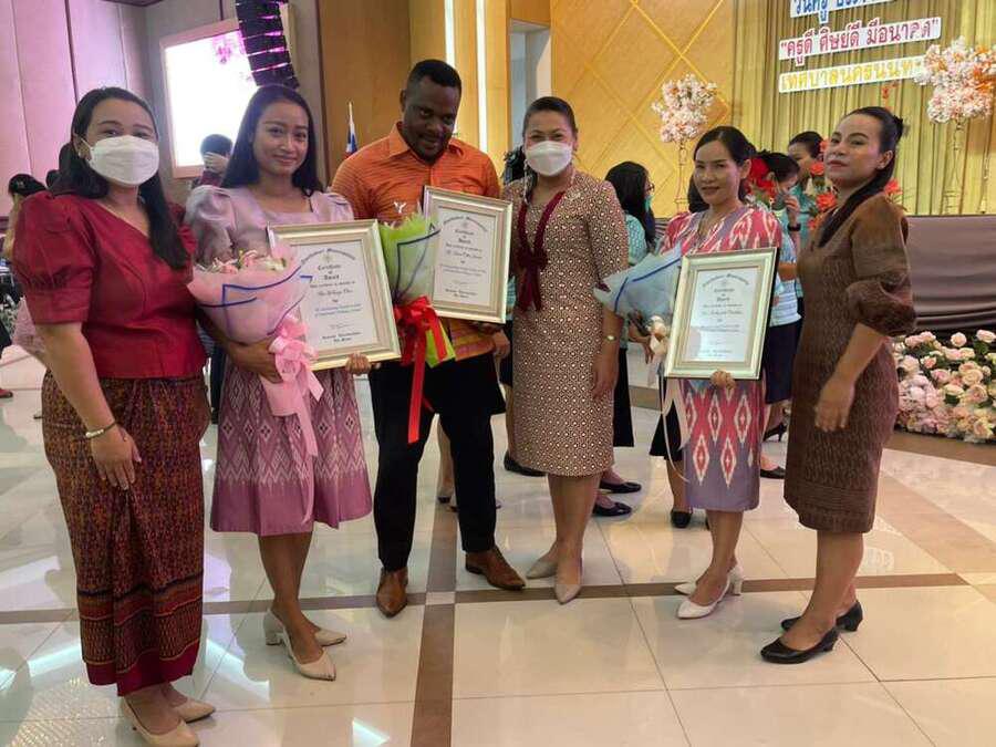 ขอแสดงความยินดีกับครูดีเด่น ปี 2566 โรงเรียนนครนนท์วิทยา 2 วัดทินกรนิมิต 1. นางภคภัค จันชู รางวัล ครูดีเด่นประจำโรงเรียน 2. นางสาววทันยา เฉิน รางวัล ครูดีเด่นประจำโรงเรียน 3. MR. TANWE COLLINS FUNWEรางวัล ครูต่างชาติดีเด่นประจำโรงเรียน ในวันครู 16 ม.ค. 2566? ณ อาคาร 2 ชั้น 5 เทศบาลนครนนทบุรี S:0
