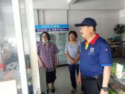 นายสมนึก ธนเดชากุล นายกเทศมนตรีนครนนทบุรี พร้อมด้วยคณะ พักรับประทานอาหารกลางวัน ณ รร. นว. 2 ระหว่างมอบถุงยังชีพและให้ความช่วยเหลือ เยียวยา บรรเทาความเดือดร้อนแก่พี่น้องประชาชน