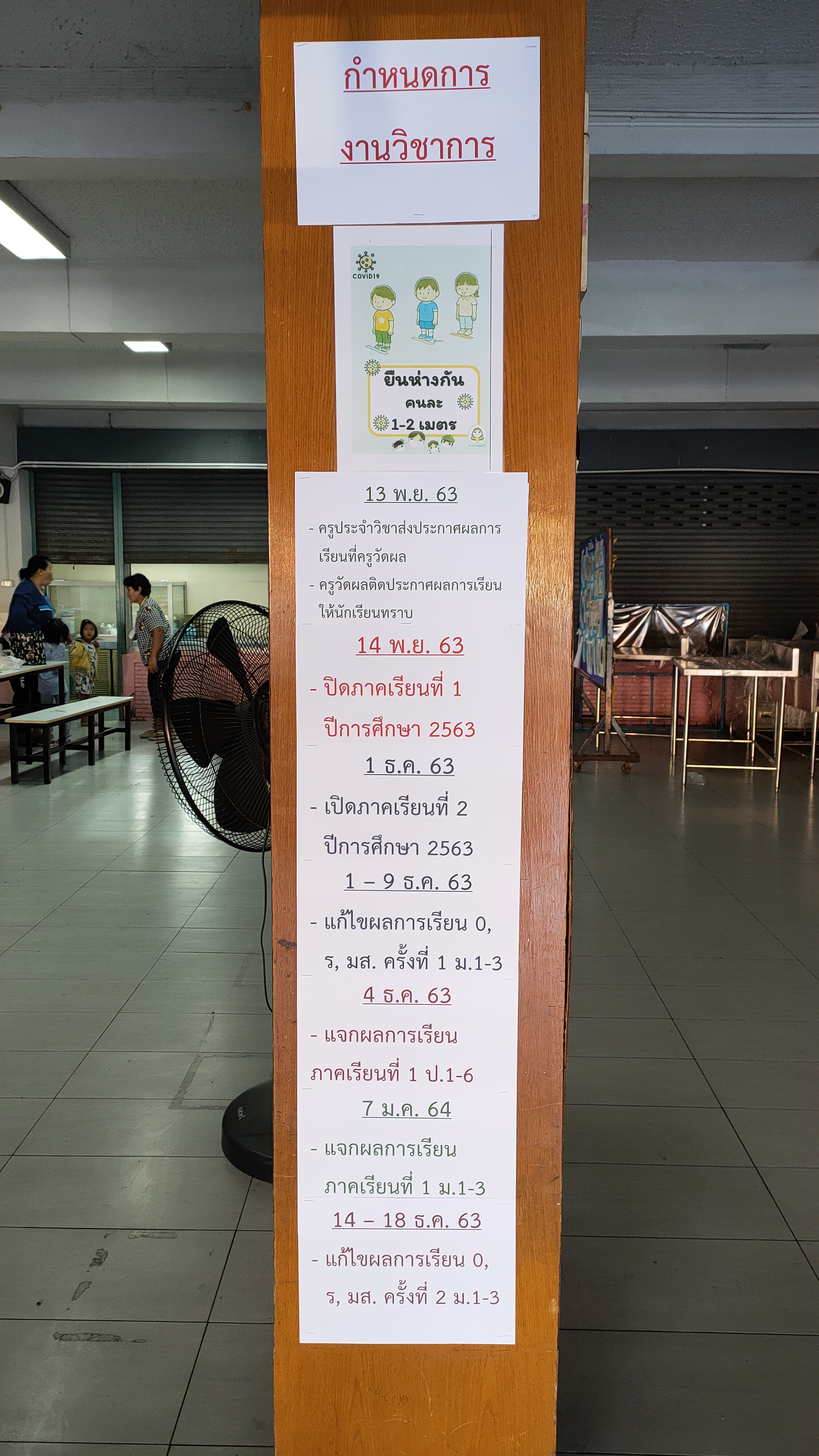 ************* 14 พย63 ปิดภาคเรียนที่ 1 ปีการศึกษา 2563 1 ธค 63 เปิดภาคเรียนที่ 2 ปีการศึกษา 2563 1-9 ธค 63 แก้ผลการเรียน 0 ร มส ครั้งที่ 1 ม.1-ม.3 4 ธค 63 แจกผลการเรียน ภาคเรียนที่ 1 ป.1-ป.6 7 มค 63 แจกผลการเรียน ภาคเรียนที่ 1 ม.1-ม.3 14-18 ธค 63 แก้ไขผลการเรียน 0 ร มส ครั้งที่ 2 ม.1-ม.3 *************