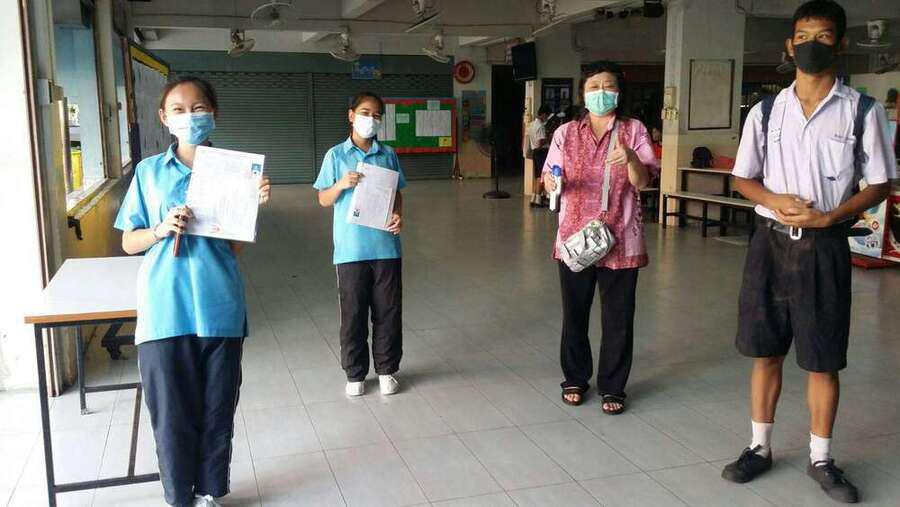 นักเรียน ชั้น ป.6 ม.3 และที่จะย้าย มารับผลการเรียน ได้ในวันที่ 31 มีนาคม 2563 โดยให้ทยอยมารับ ใส่แมส ห่างกัน 2 เมตร ล้างมือด้วยสบู่หรือแอลกอฮอล S:0